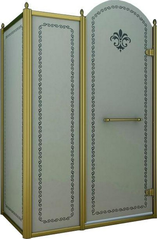 Душевой уголок 900х900хh2116мм, квадрат, "Правый" распаш. дверь справа, с неподв.стенкой (стекло матовое с прозр/узором, 8мм, фурн/золото), Retro ZZ
