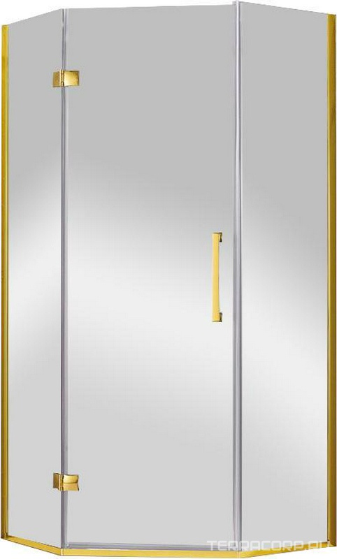 Душ. уголок 900х900хh1950мм, пятиугольный, расп.дверь петли слева, с 2-мя неподв.сегм., вход 595мм, (стекло прозр., 8мм, фурн. цв.золото), Magic ZZ