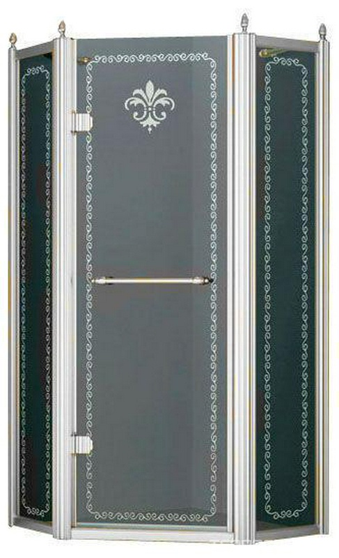 Душ. уголок 900х900хh1950мм,5-ти угольн.,расп.дверь петли слева,с 2мя неподв.сегм,вход 507мм,(ст.матов. с прозр. узором,6/8мм, фурн.цв.хром), Retro XX