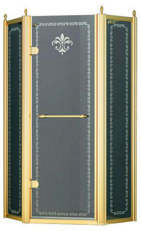 Душ. уголок 900х900хh1950мм,5-ти угольн.,расп.дверь петли слева,с 2мя неподв.сегм,вход 507мм,(ст.матов. с прозр. узором,6/8мм,фурн.цв.золото),Retro XX