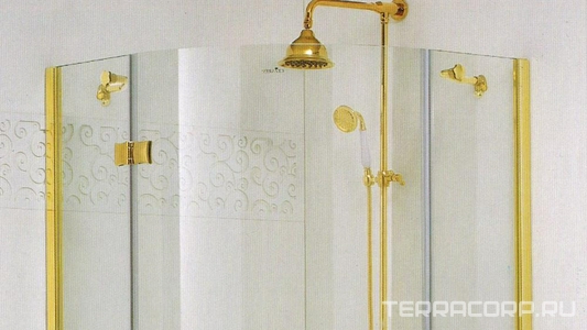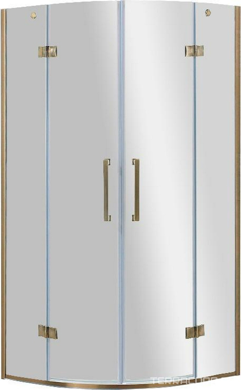 Душ. уголок 900х900хh1950мм, 1/4 круга, R550мм, 2 расп.двери, вход 730мм, с 2-мя неподв.сегм., (стекло прозрачн, 8мм, фурн/золото), Magiс ZZ