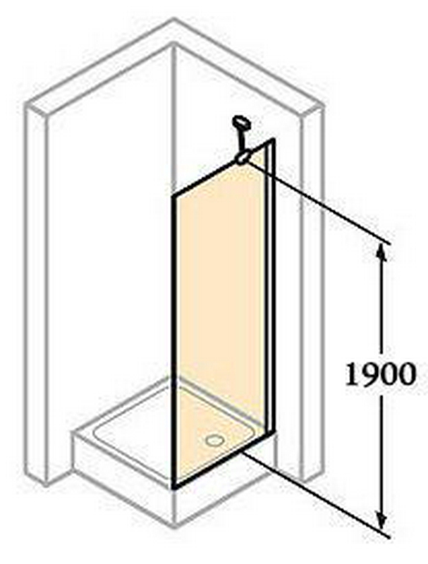 Боковая стенка 900хh1900мм, для односекц. раздвиж.двери с неподвиж. сигментом (проф. цв. глянц. хром, стекло 6мм прозр. Anti-Plague),Huppe Aura 4уг.ZZ