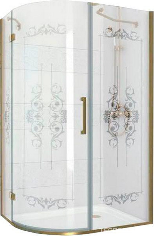 Душ.угол.1200х900хh1950мм,R550,ассиметрич, "Правая" (петли слева),вход 730мм,(стек.8мм, матов.с прозр.рис, фурн. цв.зол.),Magic-RP ZZ