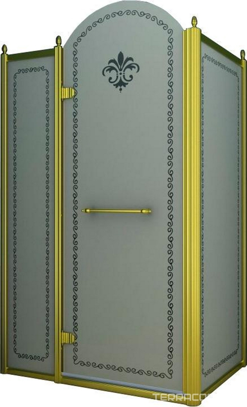 Душевое огражд.прямоуг.1200х900хh2166мм, дверь 760мм, петли, неподв.сегм. слева, бок. стенка справа,(ст.8мм,мат. с прозр.рис., фурн. цв.зол),Retro ZZ