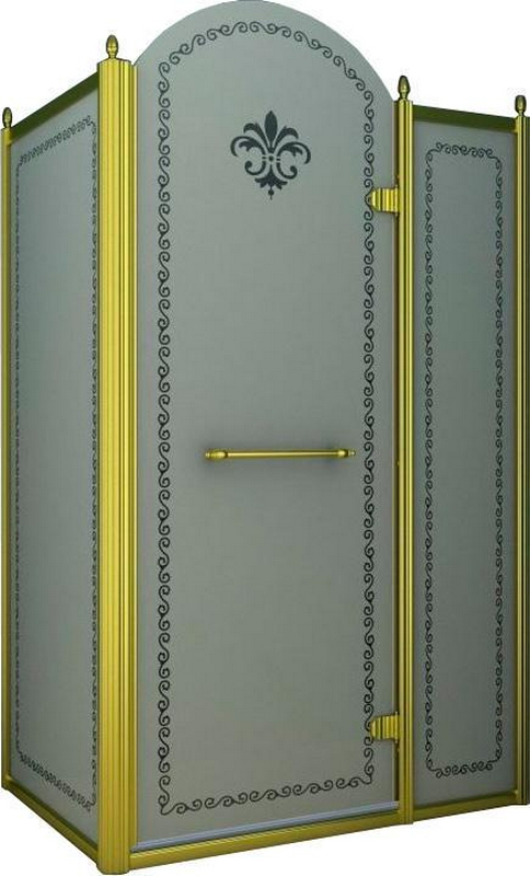 Душевое огражд.прямоуг.1200х900хh2166мм, дверь 760мм, петли, неподв.сегм. справа, бок.стенка слева,(ст.8мм,мат. с прозр.рис.,фурн. цв.зол), Retro ZZ