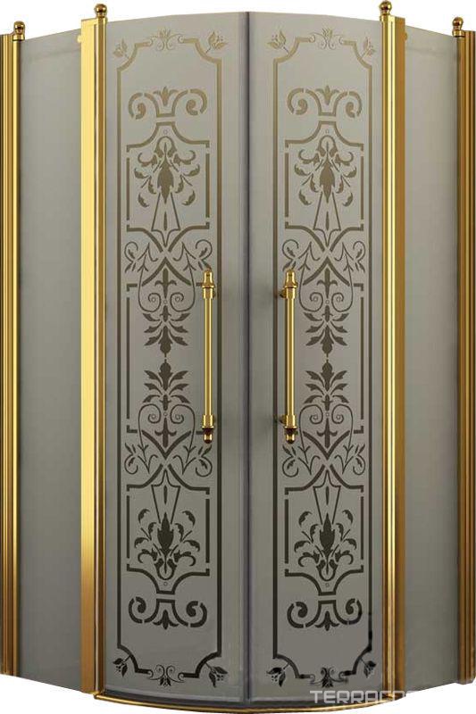 Душевое ограждение, 1/4 круга, R550, 1000х1000хh1950мм, 2 расп.двери с 2 неподв.сегм., (профиль цв. золото, стекло 6мм матовое.с прозр.рис), Malme ZZ