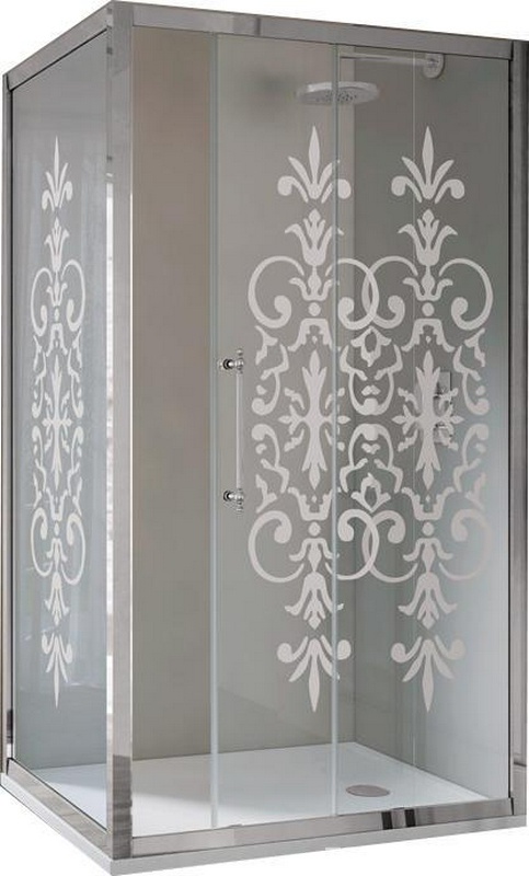 Стенка боковая для душевой двери, 100(97-100)хh200см, правая/левая, (стекло матовое с прозр. декором, профиль цв.хром), ZZ Samo Villa Borchese B7329 ULU R6
