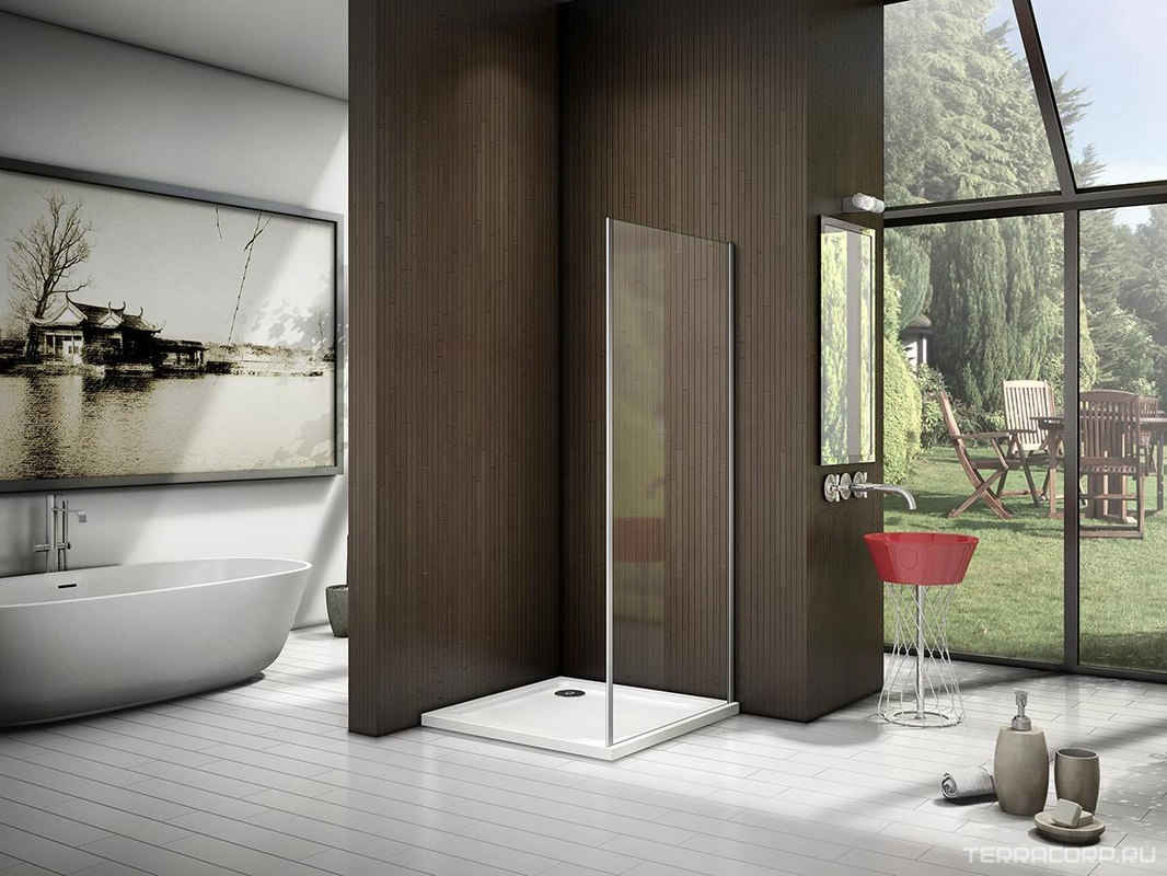 Боковая часть 80 см. для душевого Г-образного ограждения "LATTE", проф.хром, прозрачн.стекло ZZ