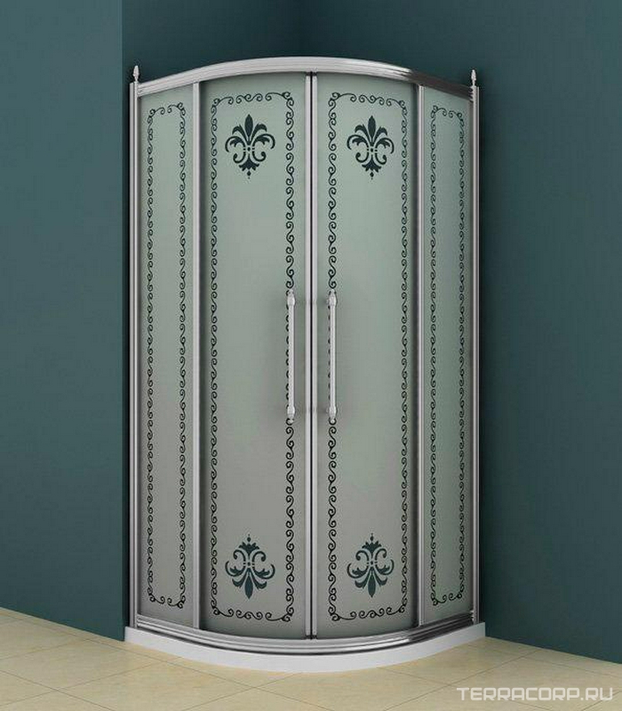 Душевой уголок 1000х1000хh1950мм, 1/4 круга, R550мм, две раздвижные двери, (стекло прозрачное с мат.узором, 8мм, фурнит. цв.хром), Retro ZZ