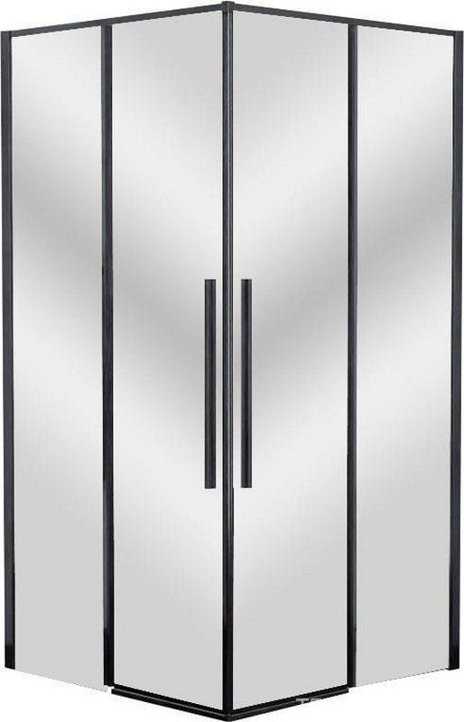 Душевой уголок 900х900хh1900мм, квадрат, 2 сдвиж. дверцы с 2 неподв. сегментами, (стекло прозрачное 6мм, фурн.цв.черный матовый), Eco