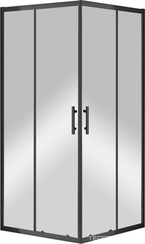 Душевой уголок 900х900хh1900мм, квадрат, 2 сдвиж. дверцы с 2 неподв. сегментами, (стекло прозрачное 6мм, фурн.цв.черный матовый), Eco