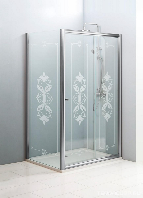 Душ.уголок 1200х900хh1950мм,прямоуг,одна сдвиж. дверь с неподв.сегм. и бок.стенкой, Правая/Левая,(ст.прозр.с мат.принтом 6мм, проф. хром), GiubleoZZ