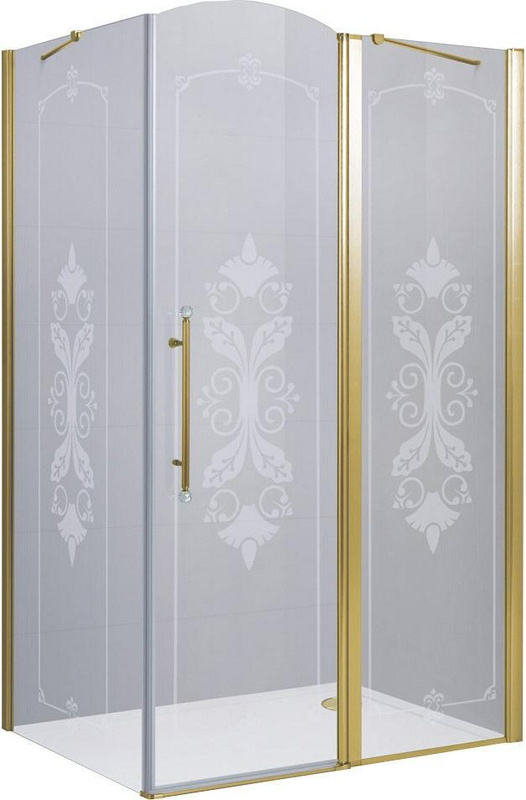 Душевой уголок 1000х1000хh2118мм, квадрат, "Правый" распаш. дверь справаа, с неподв.стенкой (стекло прозрачное с мат/узором, 8мм, фурн/золото) Retro Z