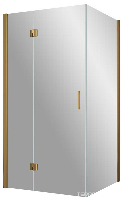 Душ.уголок 1000х1000хh1950мм, квадрат, распашная дверь с неподв.сегм. и бок.стенкой, ПРАВАЯ, (стекло прозр.с мат.узором 6мм, проф.цв.золото),GiubleoZZ