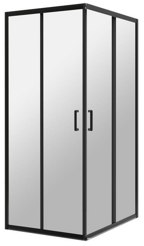 Душевой уголок 900х900хh1900мм, квадрат, 2 сдвиж. дверцы с 2 неподв. сегментами, (стекло прозрачное 6мм, фурн.цв.черный матовый), Eco