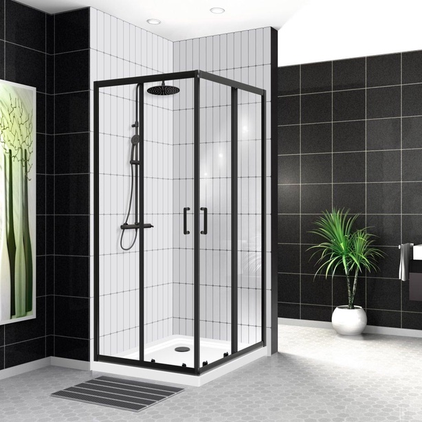 Душевой уголок 1000x1000хh1900мм, квадратн., раздвижные двери, (стекло прозрачное 6мм, фурн.цв.черный матовый), Alpha ZZ