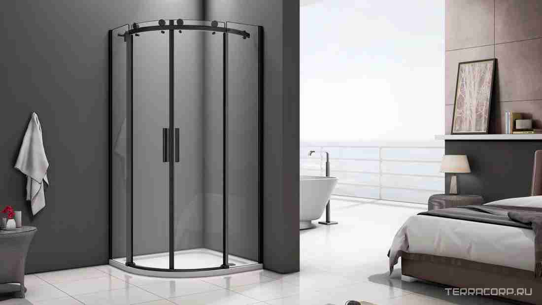 Душевое ограждение Good Door (BAS) GALAXY R-90-C-B, 90х90х195 см, одностворчатое, четверть круга, стекло прозрач. профиль черный ZZ
