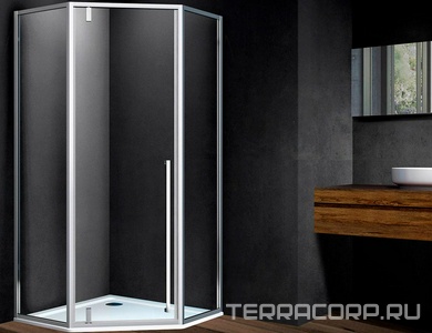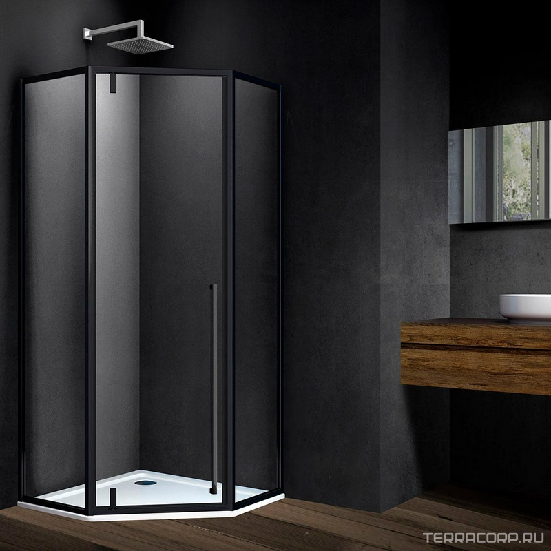 Душевой уголок 1000х1000хh1950мм, 5-ти угольный, распашн.дверь правая/левая, с 2 неподв.сегмент.(ст.прозр.6мм Easy Clean, фурнит.цв.черн.мат),Penta ZZ