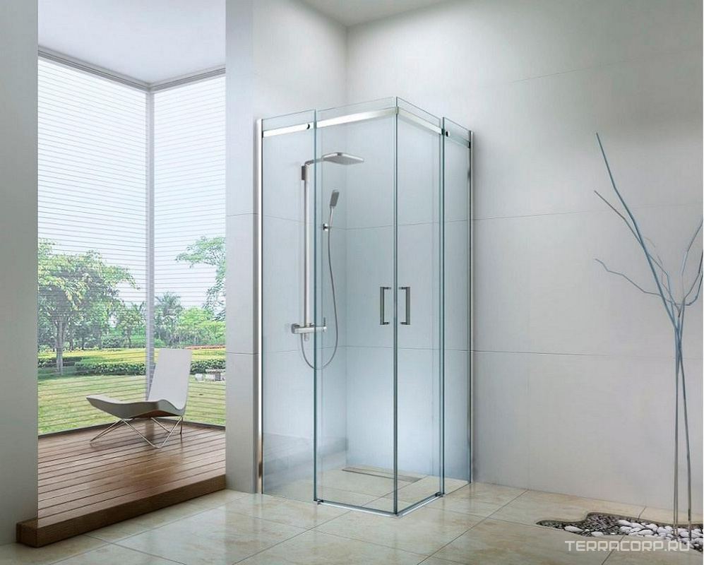 Душевое ограждение 90х90 см, раздвижные двери, профиль хром, стекло прозрачное (6мм), без поддона ZZ