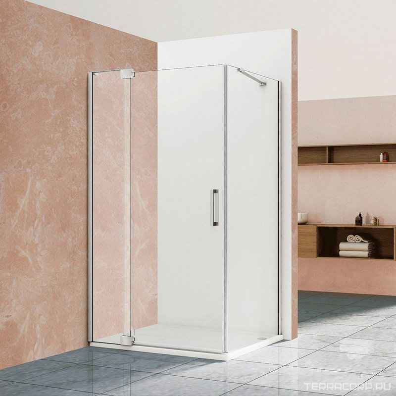 Душ уголок 900/1000х900хh2000мм, прямоуг.,правый/левый, расп.дверь с неподв.сегмен. и бок.стенкой, (стекло прозр.8мм, фурн.цв.хром), Extra ZZ