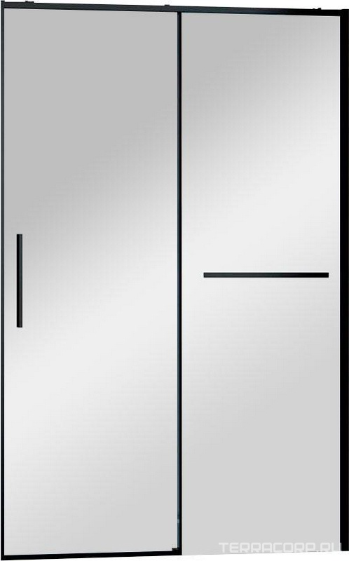 Дверь для душа, в нишу 1500хh2000мм, раздвижн, 1 дверь, 1 неподв.секция, правая/левая,(стекло прозрач 6мм Easy Clean,фурн.цв.черный мат), Slim Soft ZZ