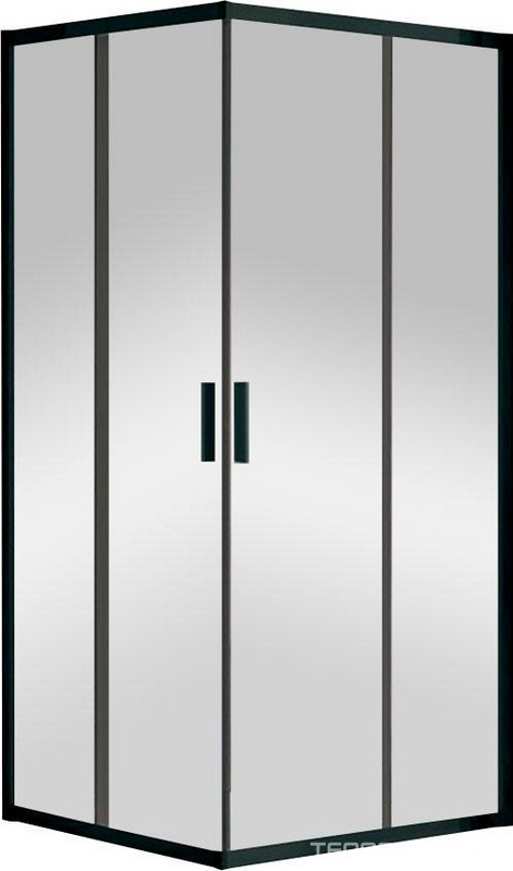 Душевой уголок 900х900хh1900мм, квадрат, 2 сдвиж. дверцы с 2 неподв. сегментами, (стекло прозрачное 6мм, фурн.цв.черный матовый), Eco