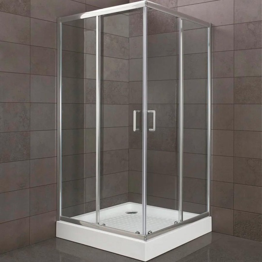 Душевой уголок 800х800хh1900мм, квадрат, 2 сдвиж. дверцы с 2 неподв. сегментами, (стекло прозрачное 6мм, фурн.цв.хром), Eco ZZ