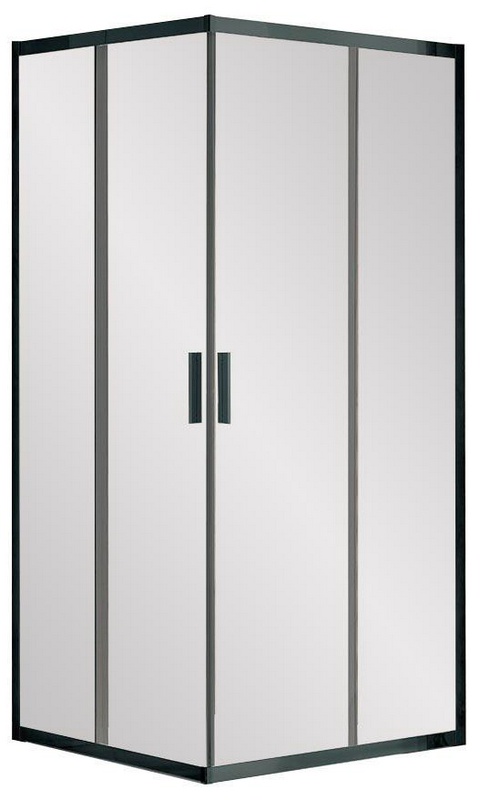 Душевой уголок 900х900хh1900мм, квадрат, 2 сдвиж. дверцы с 2 неподв. сегментами, (стекло прозрачное 6мм, фурн.цв.черный матовый), Eco
