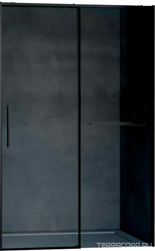 Дверь для душа, в нишу 1200хh2000мм, раздвижн, 1 дверь, 1 неподв.секция, правая/левая,(стек.тонирован 6мм Easy Clean,фурн.цв.черный мат), Slim Soft ZZ