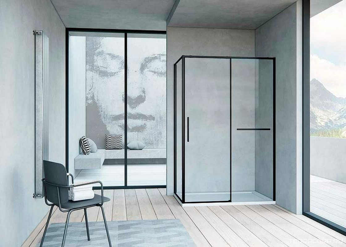 Душевой уголок 1200х800хh2000мм, прямоуг., правый/левый, (стекло прозрачное 6мм Easy Clean, фурн.цв.черный матовый), Slim Soft ZZ