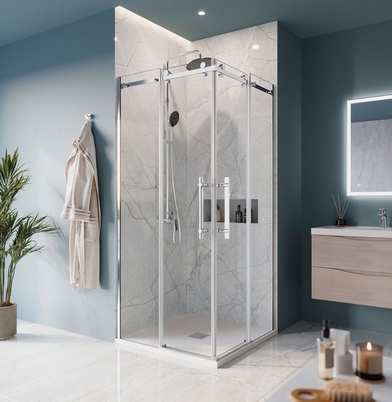 Душевой уголок "П"-образный, 90х120х90, профиль хром, стекло прозрачное/сатин ZZ