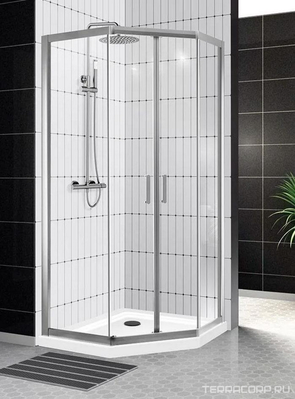 Душевой уголок 1000х800хh1950мм, 5-ти угольный, распашная дверь с 2 неподвижн. сегм., правый/левый, (стекло прозр.5/4мм, фурнит. цв.хром), Uno-195 ZZ