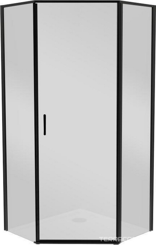 Душевой уголок 900х900хh1950мм, 5-ти угольный, распашная дверь с 2 неподв.сегментами, правая/левая, (стек.прозр.5мм, фурнит.цв.черный мат), Uno-195 ZZ