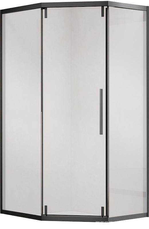 Душевой уголок 1000х1000хh2000мм, 5-ти угольный, раздвиж. дверь правая/левая, с 2 неподв.сегментами, (стекло прозрач 6мм, фурн.цв.черный мат), Show ZZ