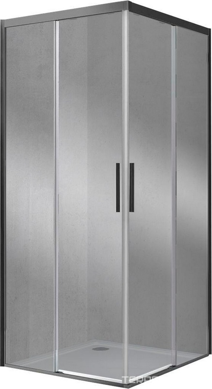 Душевой уголок 900х900хh1900мм, квадрат, 2 сдвиж. дверцы с 2 неподв. сегментами, (стекло прозрачное 6мм, фурн.цв.черный матовый), Eco