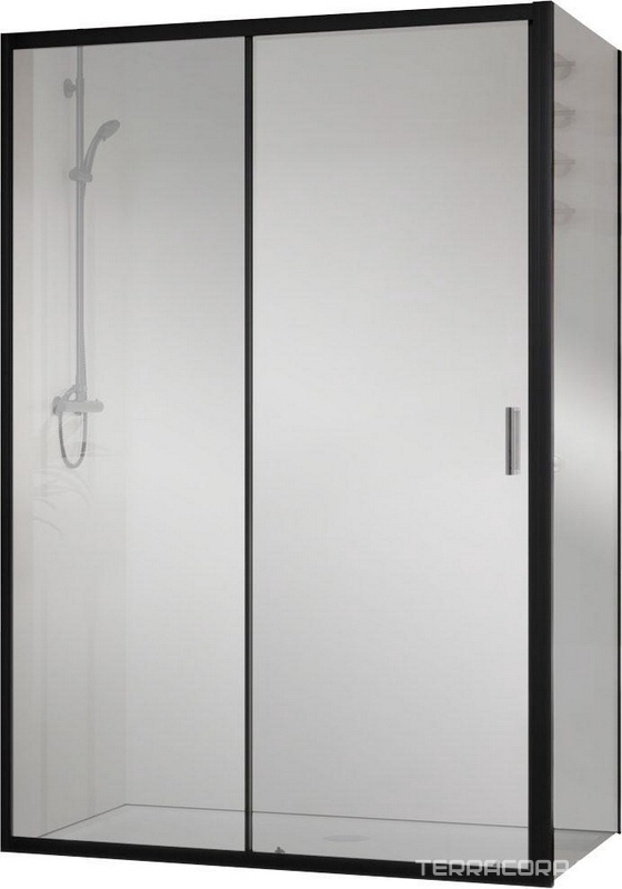 Дверь для душа, в нишу 1400хh2000мм, раздвижн, 1 дверь, 1 неподв.секция, правая/левая,(стекло прозрач 6мм Easy Clean,фурн.цв.черный мат), Slim Soft ZZ