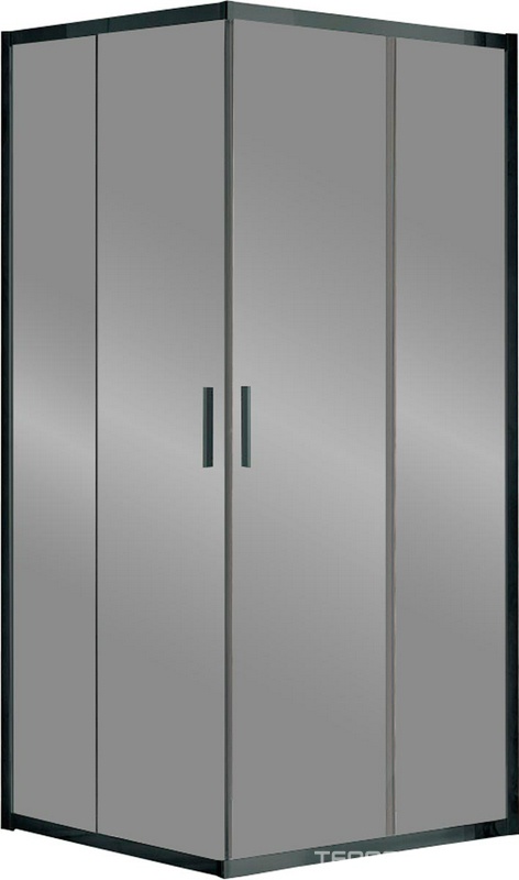 Душевой уголок 900х900хh1900мм, квадрат, 2 сдвиж. дверцы с 2 неподв. сегментами, (стекло прозрачное 6мм, фурн.цв.черный матовый), Eco
