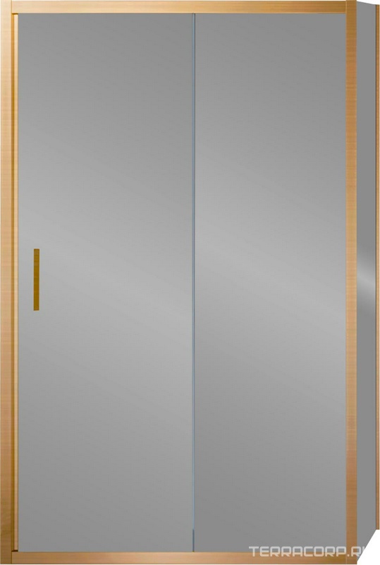 Дверь для душа, в нишу 1100хh2000мм, раздвижн, 1 дверь, 1 неподв.секция, правая/левая,(стекло прозрач 6мм Easy Clean,фурн.цв.браш.золото),Slim Soft ZZ