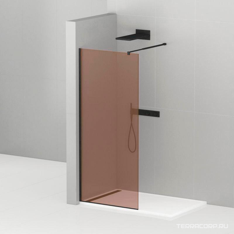 LIBERTA-L-1-110-BR-NERO Душевая перегородка с односторонним входом, стекло бронза, профиль чёрный, 1100x1950 мм | ZZ