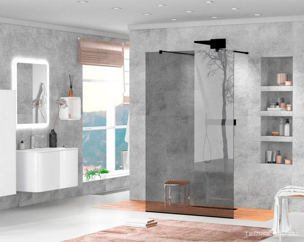 LIBERTA-L-2-120-GR-NERO Душевая перегородка с возможностью двустороннего входа, стекло графит, профиль чёрный, 1200x1950 мм | ZZ