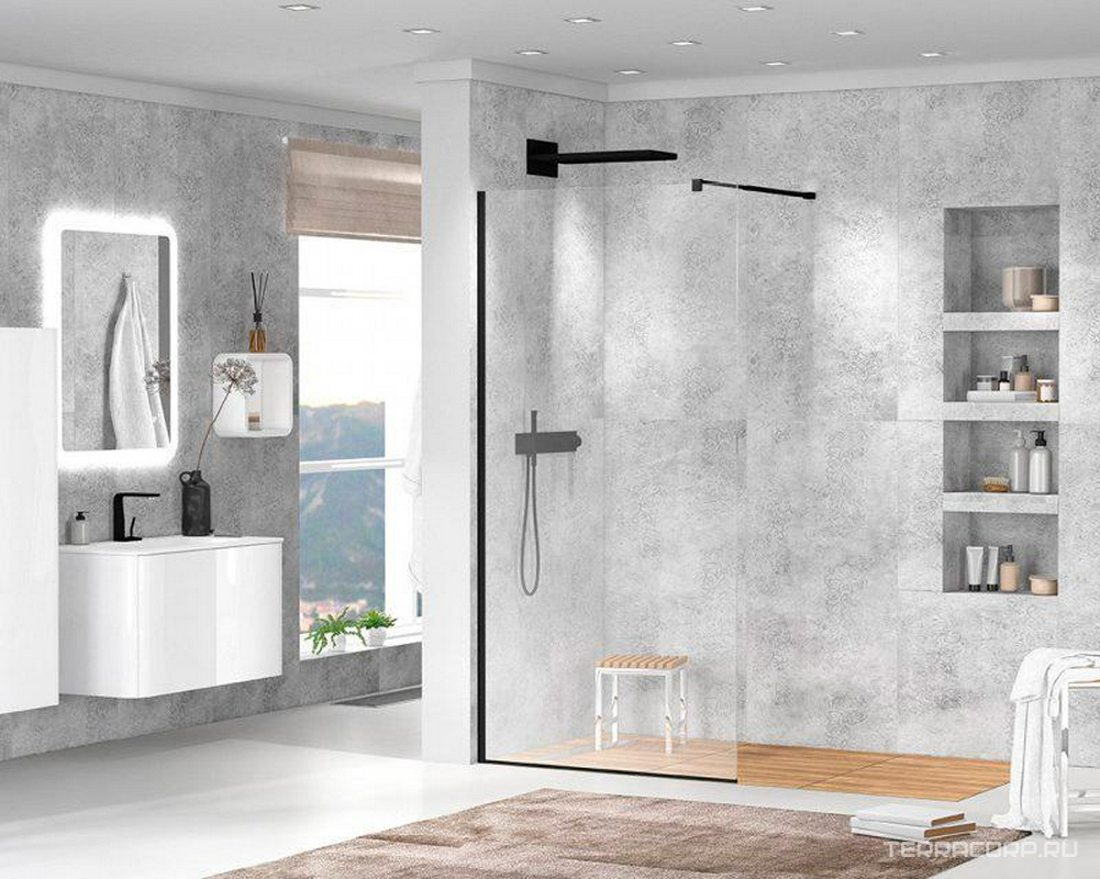 LIBERTA-L-1-95-C-NERO Душевая перегородка с односторонним входом, стекло прозрачное, профиль чёрный, 950x1950 мм | ZZ