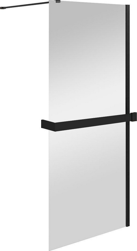 Душевая перегородка 900хh2000мм, правая/левая, (стекло прозрачное 8мм, поперечн. укорачиваемый кронштейн 1200мм, фурнит.цв.черный мат.), Walk-In ZZ