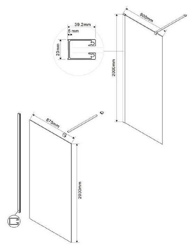 Душевая перегородка 900хh2000мм, правая/левая, (стекло прозрачное 8мм, поперечн. укорачиваемый кронштейн 1200мм, фурнит.цв.золото мат.), Walk-In ZZ