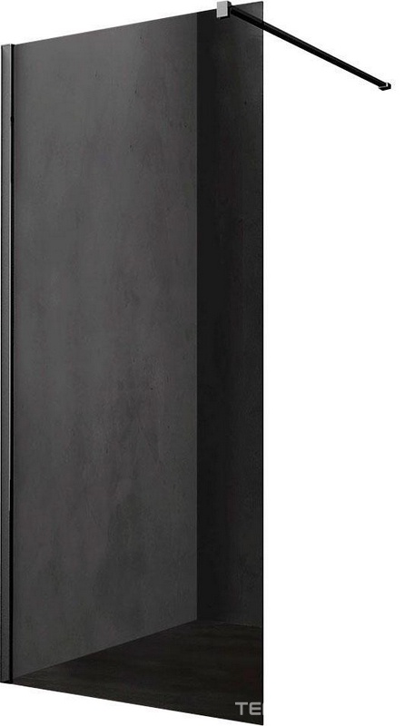 Душевая перегородка 900хh2000мм, правая/левая, (стекло тонированное 8мм, поперечн. укорачиваемый кронштейн 1200мм, фурнит.цв.черный мат.), Walk-In ZZ