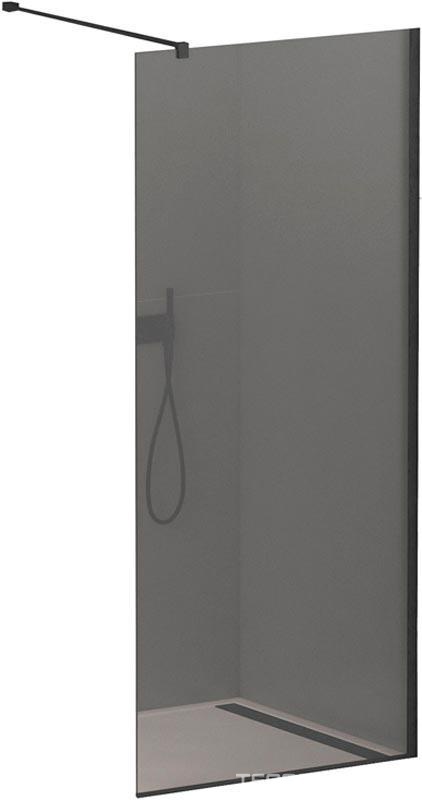 Душевая перегородка 900хh2000мм, правая/левая, (стекло тонированное 8мм, поперечн. укорачиваемый кронштейн 1200мм, фурнит.цв.черный мат.), Walk-In ZZ