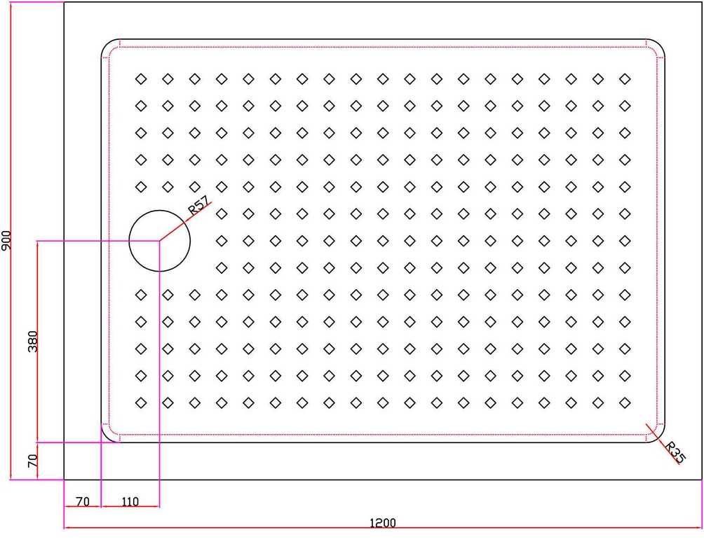 Поддон душевой 1200х900h150мм, прямоугольный, отв. слива 90мм, (сифон крышка цв.хром, мет каркас, ножки в компл.), акрил цв.белый, Cezares ZZ