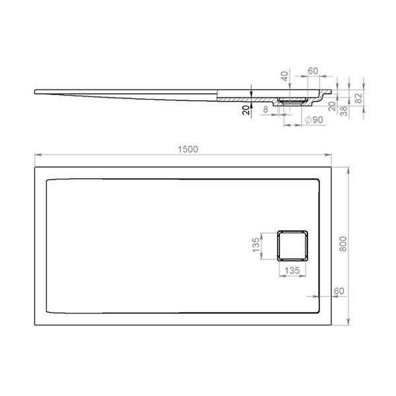 Поддон душевой 1500х800хh20(82)мм, прямоуг, литой каменьS-Sense, глянец цв.белый, крышка слива в компл., отв.слива 90мм, без сифона, Capri ZZ