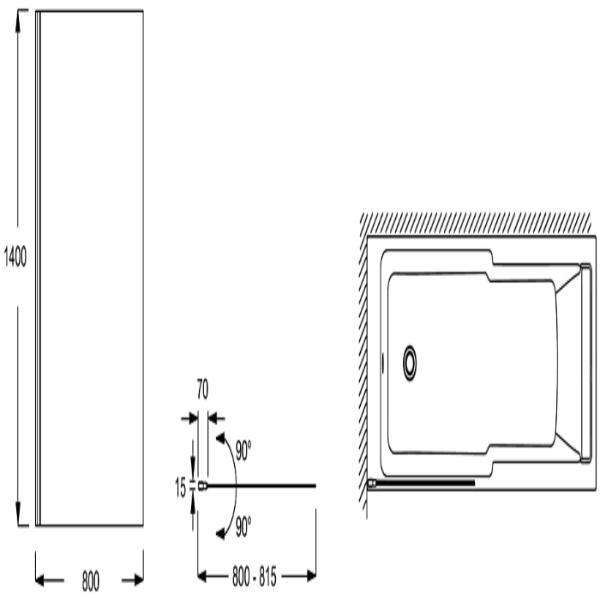 Шторка распашная на ванну для ванны STRUKTURA 80x140 см, профиль хром, ст.прозрачное, регул. шир. 80-81.5 см, ZZ