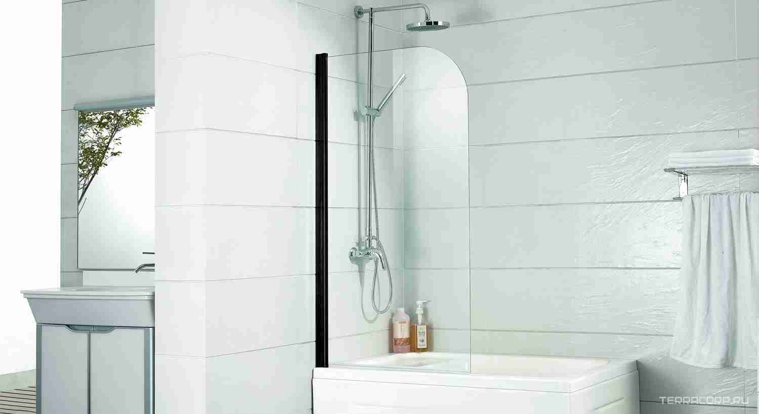 Шторка для ванны распашная 800х1400 мм, прозрачное стекло, цвет черный ZZ