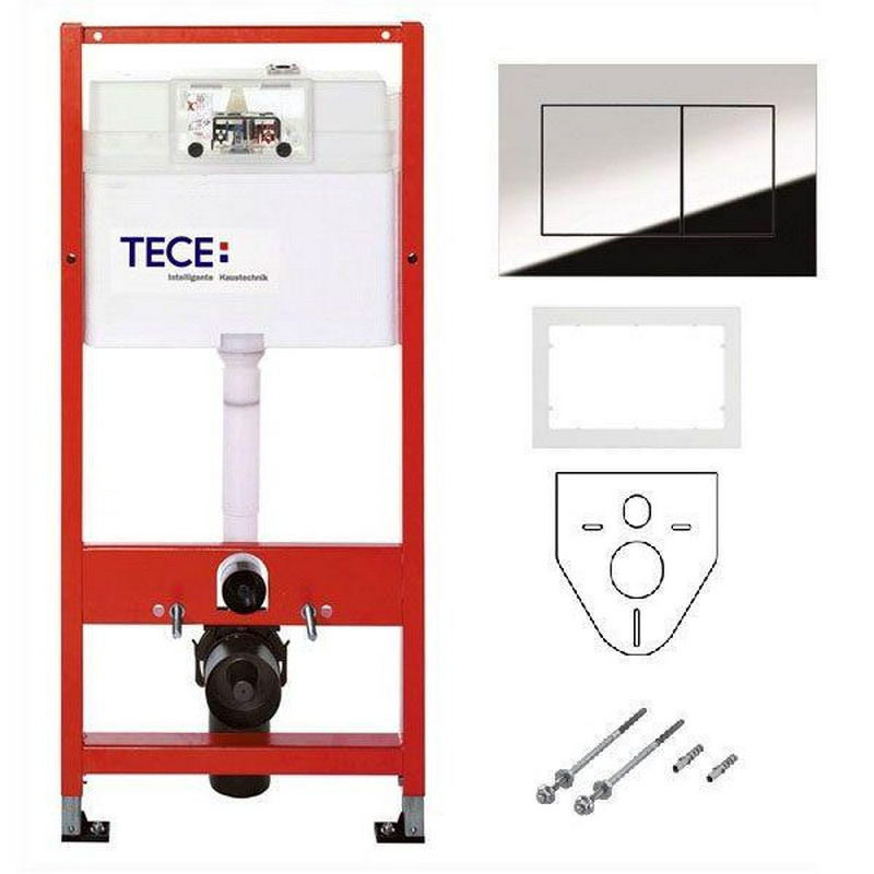 Комплект для установки подвесн.унитаза, (застенный модуль, крепёж, прокладка звукоиз, панель 2-го смыва TECEnow пластик цв.ХРОМ ГЛЯНЕЦ), TECEbase 2.0